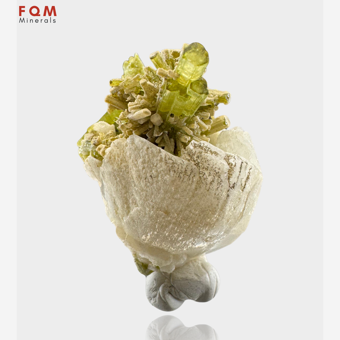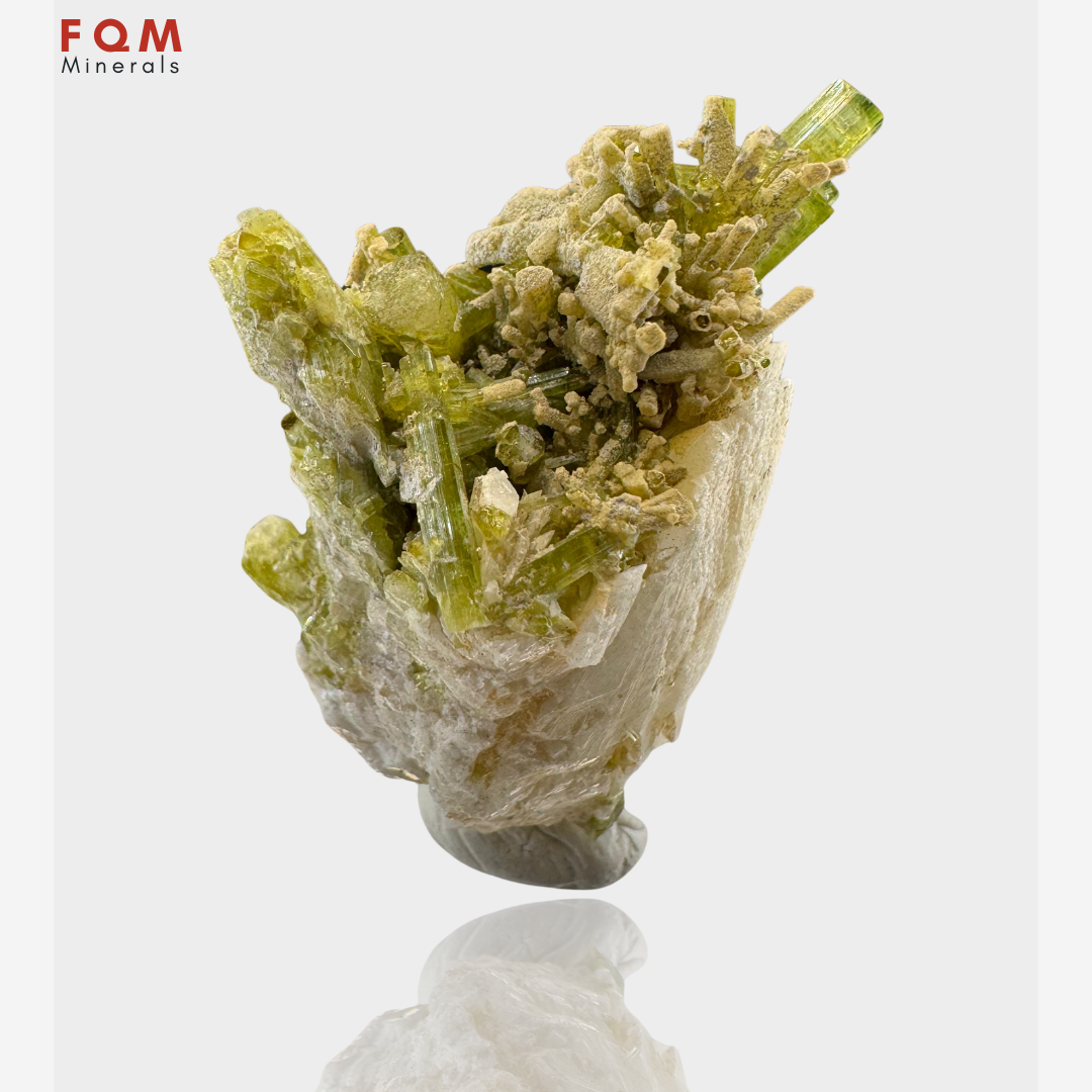 This stunning 5.5 x 3 cm specimen showcases a vibrant bunch of Tourmaline crystals beautifully set on a Feldspar base. Originating from Chhapu, Braldu Valley, Shigar District, Gilgit Baltistan, Pakistan, the Tourmaline’s natural luster and vivid hues contrast magnificently with the earthy Feldspar, creating a visually captivating mineral formation. A must-have addition for collectors seeking rare and eye-catching specimens.