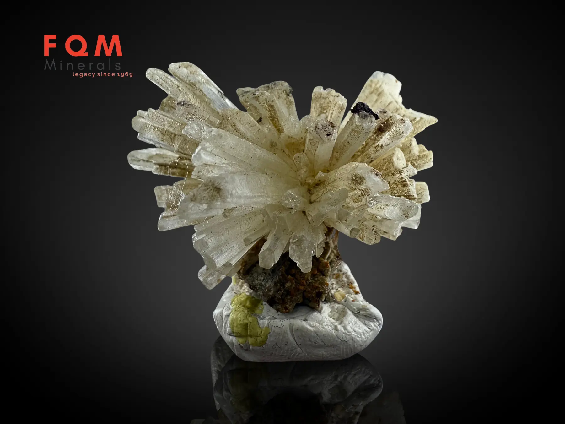 This is a fine-quality aragonite bunch cluster on matrix sourced from the Skardu region of Pakistan, known for producing exceptional mineral specimens. The cluster features well-formed, lustrous crystals with a striking natural arrangement that stands out beautifully on its host rock.