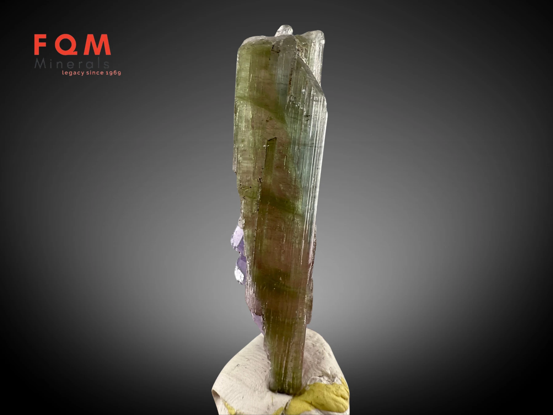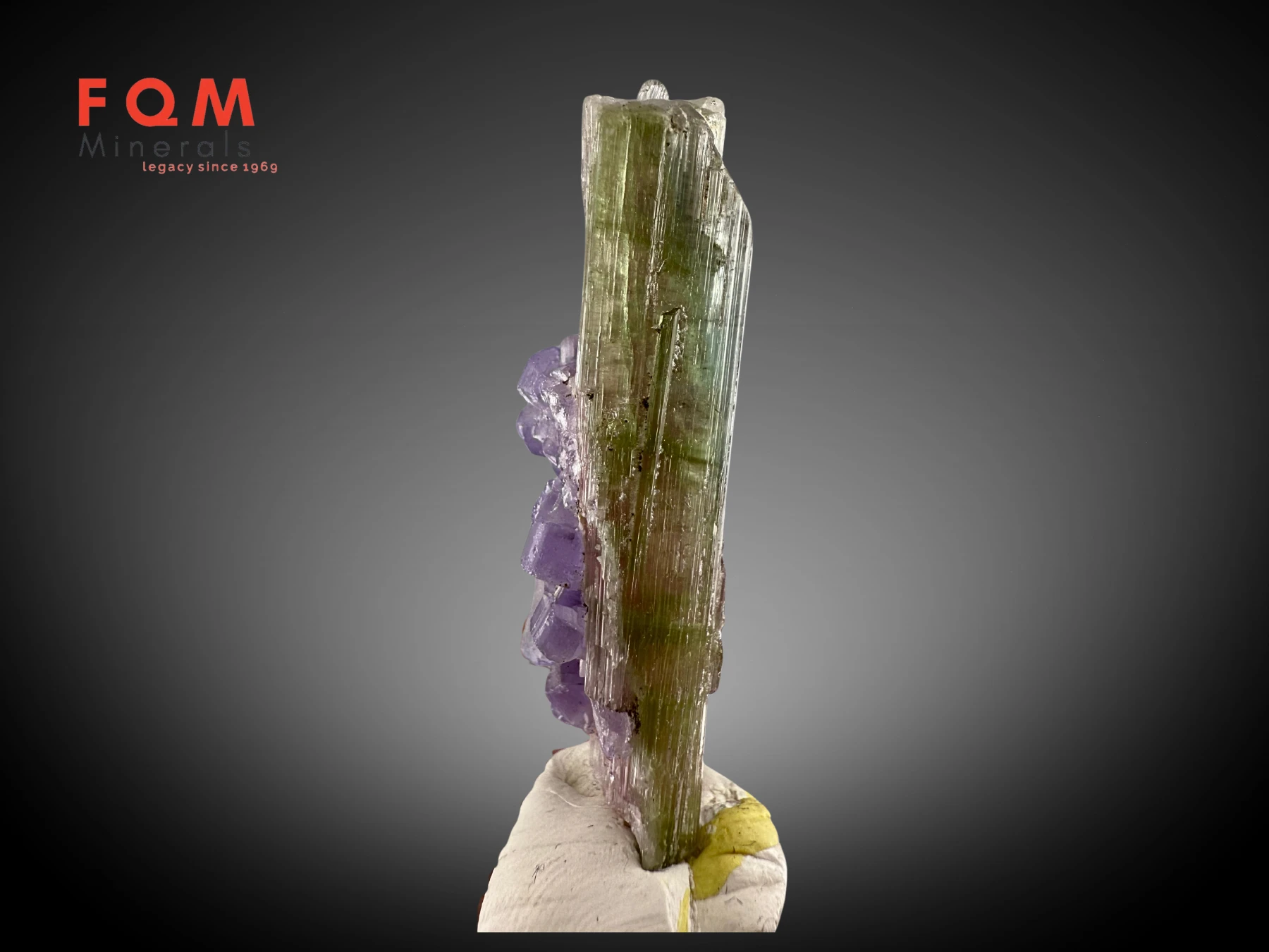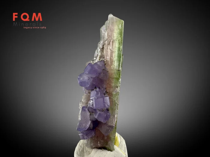 – Rare purple apatite crystal with attached bi-colour tourmaline