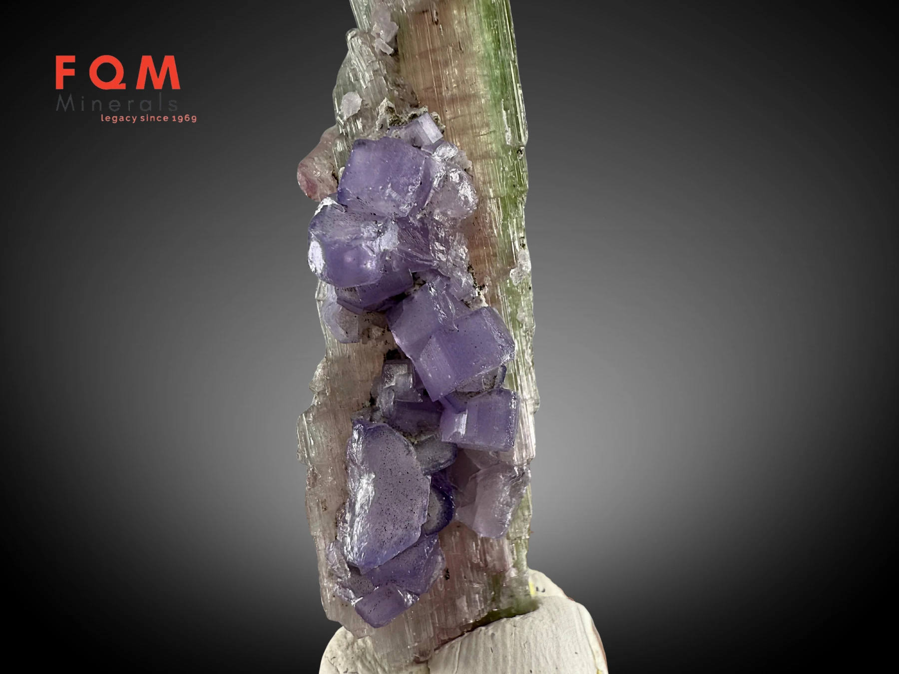This exquisite purple apatite crystal combined with a striking bi-colour tourmaline comes from the mineral-rich mountains of Afghanistan, a locality famous for producing world-class gem minerals.